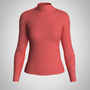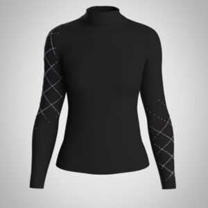 Si asciuga rapidamente e avvolge il corpo seguendo il gesto atletico seguendo le forme senza stringere. Il collo alto a cratere, con la sua curva profonda che si apre delicatamente verso le spalle, dona un carattere elegante e ricercato. È arricchita da un motivo diamantato di cristalli aurora boreale sulle maniche, brillante e incredibilmente d’effetto per distinguersi in pista.