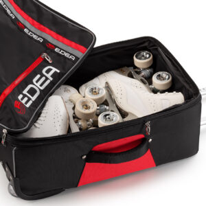 Interno capiente per la sistemazione dei pattini, con la possibilità di tenerli fermi grazie a due cinghie elastiche.