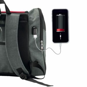 Nuovissimo zainetto portapattini di Edea, dotato di cavetto USB per collegare i tuoi device alla powerbank, mantellina antipioggio e tasca portaborraccia sul cappuccio; ampia tasca portaindumenti e tasche laterali portapattini con retina di ventilazione
